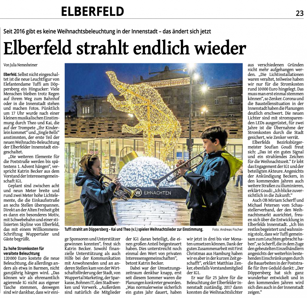Neue Weihnachtsbeleuchtung in der Presse WZ